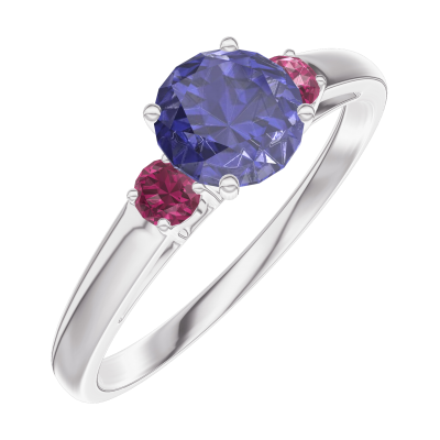« L'ATELIER » Nº163643Ring Witgoud 18 karaat - Blauwe saffier rond 0.5 Karaat - Aanleunende edelstenen Robijn 4.9