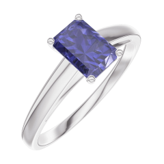 « L'ATELIER » NR. 163803Ring Witgoud 18 karaat - Blauwe saffier Rechthoekig 0.5 Karaat