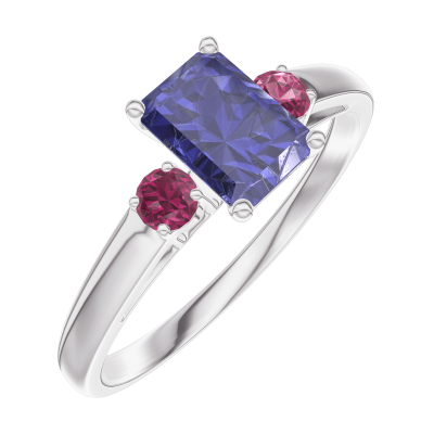 « L'ATELIER » Nº163843Ring Witgoud 18 karaat - Blauwe saffier Rechthoekig 0.5 Karaat - Aanleunende edelstenen Robijn