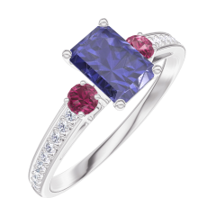 « L'ATELIER » NR. 163848Ring Witgoud 9 karaat - Blauwe saffier Rechthoekig 0.5 Karaat - Aanleunende edelstenen Robijn - Setting Diamant
