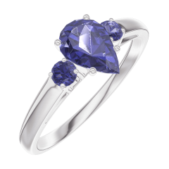 « L'ATELIER » NR. 164064Ring Witgoud 9 karaat - Blauwe saffier Peer 0.5 Karaat - Aanleunende edelstenen Blauwe saffier
