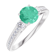 Ring Witgoud 9 karaat - Smaragd rond 0.5 Karaat - Aanleunende edelstenen Diamant - Setting Diamant
