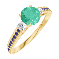 « L'ATELIER » NR. 164234Ring Geelgoud 9 karaat - Smaragd rond 0.5 Karaat - Aanleunende edelstenen Diamant - Setting Blauwe saffier 4.8