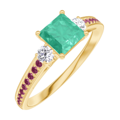 « L'ATELIER » NR. 164330Ring Geelgoud 9 karaat - Smaragd Prinses 0.5 Karaat - Aanleunende edelstenen Diamant - Setting Robijn