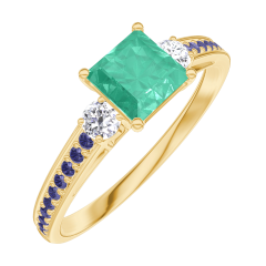 « L'ATELIER » NR. 164333Ring Geelgoud 18 karaat - Smaragd Prinses 0.5 Karaat - Aanleunende edelstenen Diamant - Setting Blauwe saffier