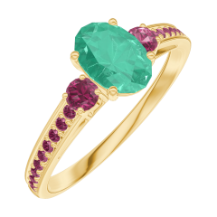 Ring Geelgoud 18 karaat - Smaragd Ovaal 0.5 Karaat - Aanleunende edelstenen Robijn - Setting Robijn