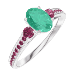 « L'ATELIER » NR. 164551Ring Witgoud 18 karaat - Smaragd Ovaal 0.5 Karaat - Aanleunende edelstenen Robijn - Setting Robijn 5