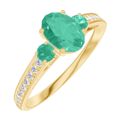 « L'ATELIER » NR. 164586Ring Geelgoud 9 karaat - Smaragd Ovaal 0.5 Karaat - Aanleunende edelstenen Smaragd - Setting Diamant 5