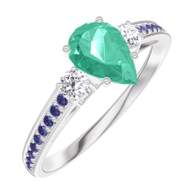 « L'ATELIER » Nº164635Ring Witgoud 18 karaat - Smaragd Peer 0.5 Karaat - Aanleunende edelstenen Diamant - Setting Blauwe saffier