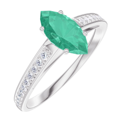 « L'ATELIER » NR. 164708Ring Witgoud 9 karaat - Smaragd Markies 0.5 Karaat - Setting Diamant