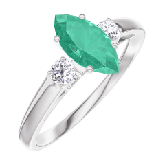 Ring Witgoud 9 karaat - Smaragd Markies 0.5 Karaat - Aanleunende edelstenen Diamant