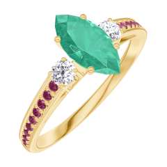 Ring Geelgoud 18 karaat - Smaragd Markies 0.5 Karaat - Aanleunende edelstenen Diamant - Setting Robijn