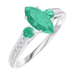 « L'ATELIER » NR. 164788Ring Witgoud 9 karaat - Smaragd Markies 0.5 Karaat - Aanleunende edelstenen Smaragd - Setting Diamant