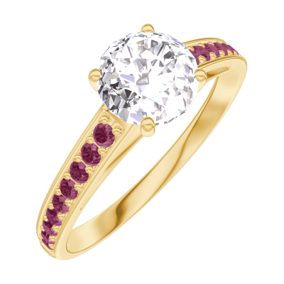 « L'ATELIER » Nº164810Ring Geelgoud 9 karaat - Diamant rond 0.7 Karaat - Setting Robijn 5