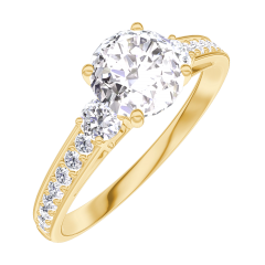 Ring Geelgoud 18 karaat - Diamant rond 0.7 Karaat - Aanleunende edelstenen Diamant - Setting Diamant