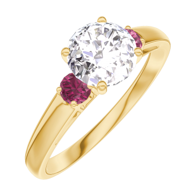 « L'ATELIER » Nº164842Ring Geelgoud 9 karaat - Diamant rond 0.7 Karaat - Aanleunende edelstenen Robijn 5