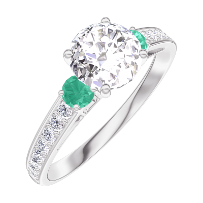 « L'ATELIER » NR. 164888Ring Witgoud 9 karaat - Diamant rond 0.7 Karaat - Aanleunende edelstenen Smaragd - Setting Diamant 5