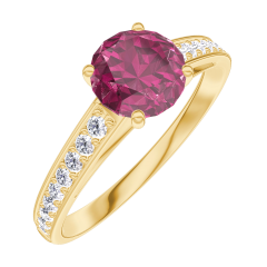 « L'ATELIER » NR. 165406Ring Geelgoud 9 karaat - Robijn rond 0.7 Karaat - Setting Diamant 5