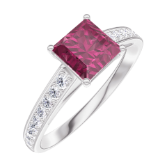 « L'ATELIER » NR. 165508Ring Witgoud 9 karaat - Robijn Prinses 0.7 Karaat - Setting Diamant