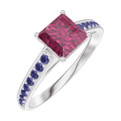 « L'ATELIER » NR. 165515Ring Witgoud 18 karaat - Robijn Prinses 0.7 Karaat - Setting Blauwe saffier