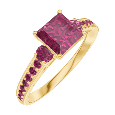 « L'ATELIER » NR. 165549Ring Geelgoud 18 karaat - Robijn Prinses 0.7 Karaat - Aanleunende edelstenen Robijn - Setting Robijn