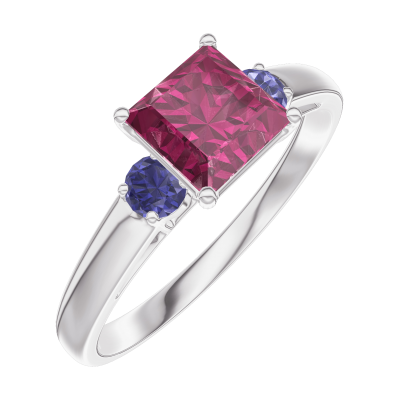 « L'ATELIER » Nº165563Ring Witgoud 18 karaat - Robijn Prinses 0.7 Karaat - Aanleunende edelstenen Blauwe saffier