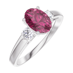 « L'ATELIER » NR. 165723Ring Witgoud 18 karaat - Robijn Ovaal 0.7 Karaat - Aanleunende edelstenen Diamant