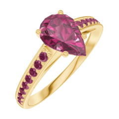 Ring Geelgoud 18 karaat - Robijn Peer 0.7 Karaat - Setting Robijn