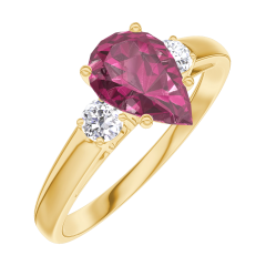 Ring Geelgoud 18 karaat - Robijn Peer 0.7 Karaat - Aanleunende edelstenen Diamant