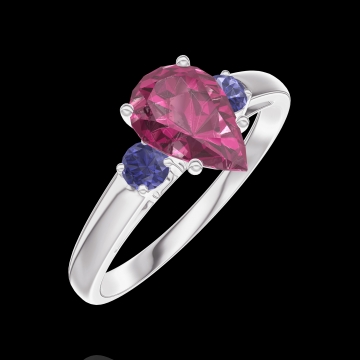 « L'ATELIER » Nº165864Ring Witgoud 9 karaat - Robijn Peer 0.7 Karaat - Aanleunende edelstenen Blauwe saffier