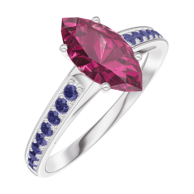 « L'ATELIER » Nº165915Ring Witgoud 18 karaat - Robijn Markies 0.7 Karaat - Setting Blauwe saffier