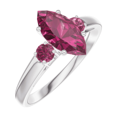 Ring Witgoud 9 karaat - Robijn Markies 0.7 Karaat - Aanleunende edelstenen Robijn