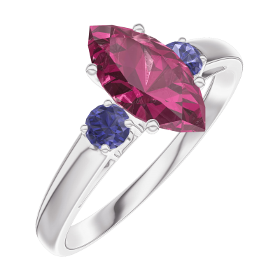 « L'ATELIER » Nº165963Ring Witgoud 18 karaat - Robijn Markies 0.7 Karaat - Aanleunende edelstenen Blauwe saffier