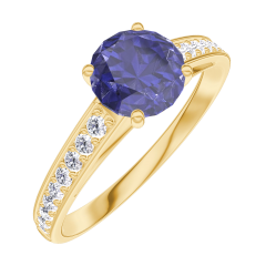 « L'ATELIER » NR. 166005Ring Geelgoud 18 karaat - Blauwe saffier rond 0.7 Karaat - Setting Diamant 5