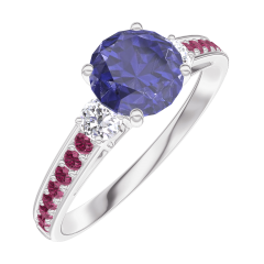 « L'ATELIER » NR. 166031Ring Witgoud 18 karaat - Blauwe saffier rond 0.7 Karaat - Aanleunende edelstenen Diamant - Setting Robijn 5