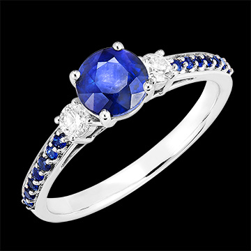 « L'ATELIER » NR. 166035Ring Witgoud 18 karaat - Blauwe saffier rond 0.7 Karaat - Aanleunende edelstenen Diamant - Setting Blauwe saffier 5