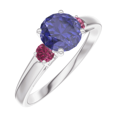 « L'ATELIER » Nº166044Ring Witgoud 9 karaat - Blauwe saffier rond 0.7 Karaat - Aanleunende edelstenen Robijn 5
