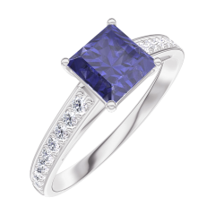 « L'ATELIER » NR. 166107Ring Witgoud 18 karaat - Blauwe saffier Prinses 0.7 Karaat - Setting Diamant