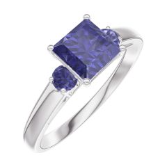 « L'ATELIER » NR. 166163Ring Witgoud 18 karaat - Blauwe saffier Prinses 0.7 Karaat - Aanleunende edelstenen Blauwe saffier