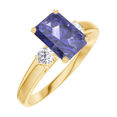 « L'ATELIER » NR. 166222Ring Geelgoud 9 karaat - Blauwe saffier Rechthoekig 0.7 Karaat - Aanleunende edelstenen Diamant