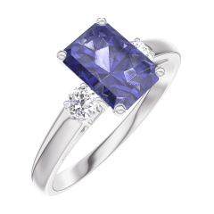 « L'ATELIER » NR. 166223Ring Witgoud 18 karaat - Blauwe saffier Rechthoekig 0.7 Karaat - Aanleunende edelstenen Diamant