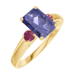 « L'ATELIER » NR. 166242Ring Geelgoud 9 karaat - Blauwe saffier Rechthoekig 0.7 Karaat - Aanleunende edelstenen Robijn