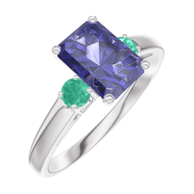 « L'ATELIER » Nº166284Ring Witgoud 9 karaat - Blauwe saffier Rechthoekig 0.7 Karaat - Aanleunende edelstenen Smaragd