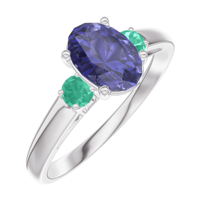 « L'ATELIER » Nº166383Ring Witgoud 18 karaat - Blauwe saffier Ovaal 0.7 Karaat - Aanleunende edelstenen Smaragd