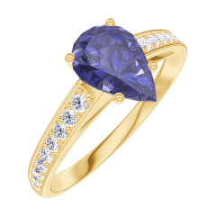« L'ATELIER » NR. 166406Ring Geelgoud 9 karaat - Blauwe saffier Peer 0.7 Karaat - Setting Diamant