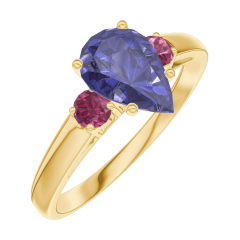 « L'ATELIER » NR. 166442Ring Geelgoud 9 karaat - Blauwe saffier Peer 0.7 Karaat - Aanleunende edelstenen Robijn