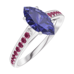 « L'ATELIER » NR. 166512Ring Witgoud 9 karaat - Blauwe saffier Markies 0.7 Karaat - Setting Robijn