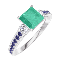 « L'ATELIER » NR. 166736Ring Witgoud 9 karaat - Smaragd Prinses 0.7 Karaat - Aanleunende edelstenen Diamant - Setting Blauwe saffier