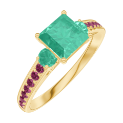 « L'ATELIER » NR. 166789Ring Geelgoud 18 karaat - Smaragd Prinses 0.7 Karaat - Aanleunende edelstenen Smaragd - Setting Robijn