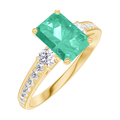 « L'ATELIER » NR. 166826Ring Geelgoud 9 karaat - Smaragd Rechthoekig 0.7 Karaat - Aanleunende edelstenen Diamant - Setting Diamant
